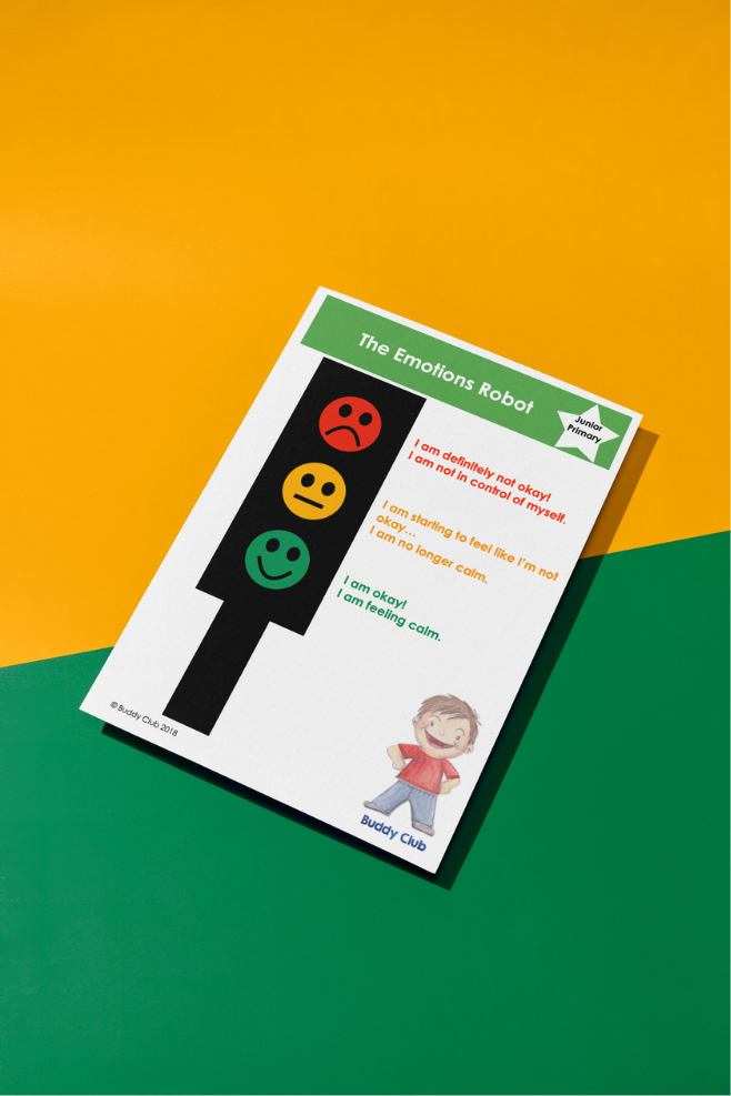 This poster is a great tool to have up in the classroom, or playroom at home. It helps children realise where their emotions are sitting on the robot of emotions, and helps them verbalise or show us, using the visual aid, how they are feeling and how strong their emotion is. This is not part of the Junior Primary module's weekly lessons, but a great addition to have for use in any of the modules.